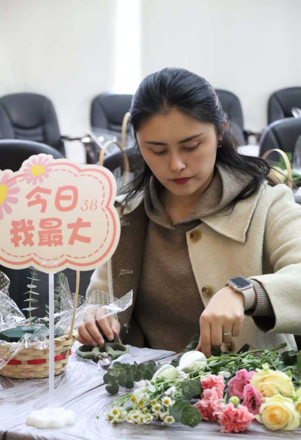 为庆祝“三八”妇女节,营造温馨愉快的节日氛围。3月7日中午,公司工会在桥梁馆101会议室组织了插花活动,邀请公司教职工广泛参与,感受明媚三月,体验中式插花美学,活动现场花香四溢、温馨浪漫、热情洋溢。