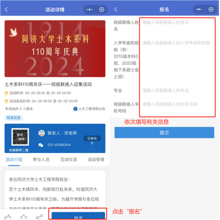 若您已认证过员工身份,请扫码后点击“报名”,并根据提示填写联络人信息。