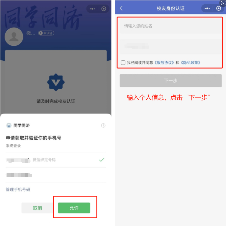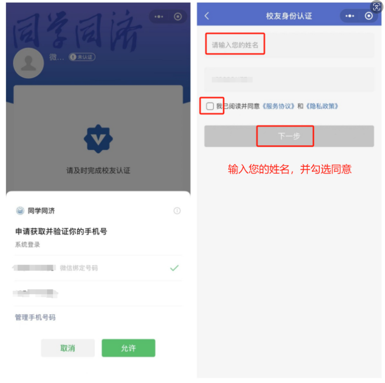 第一步:注册。通过授权手机号码并输入姓名完成小程序注册。
