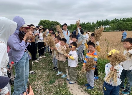 在这些环节当中,农场老师们教大家认识农作物、如何使用镰刀割麦、怎样磨面粉、如何采摘菠菜、制作菠菜手擀面条以及怎么稻田插秧等等,在活动过程中寓教于乐,既锻炼了大家的动手能力,又体会到了食物的来之不易,教职工和小朋友在活动中相互交流,全程充满欢声笑语。