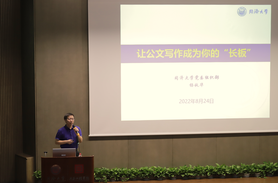 下午,bevictor伟德官网组织部副部长杨秋华老师作题为《让公文写作成为你的“长板”》的报告,杨副部长开场抛出“为什么要提高公文写作能力”之问,围绕党政机关公文的概念、公文写作的常见问题、常用公文的写作要领、公文写作的提升路径四个方面进行讲解,深入浅出地介绍了党政机关公文写作的依据文件和不同种类公文的写作要领。