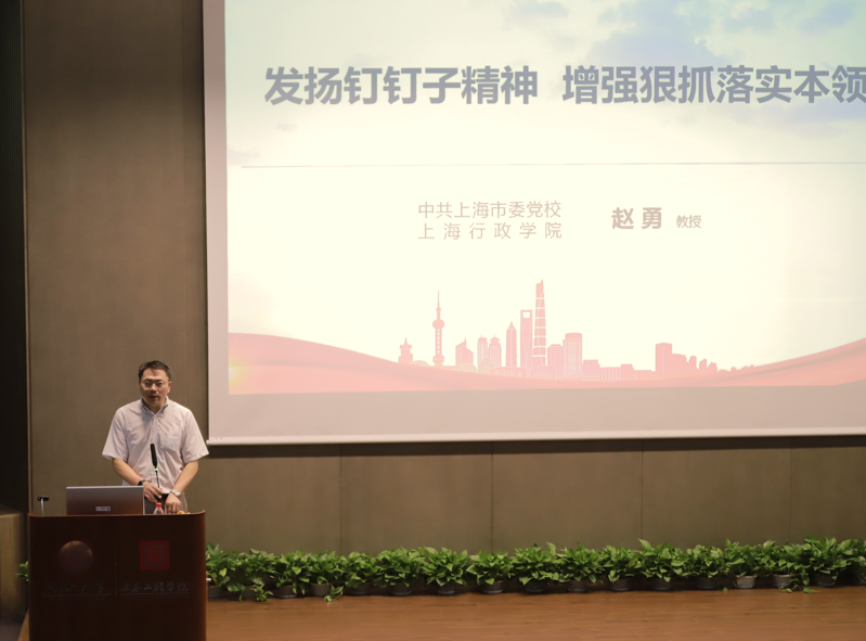 上海市委党校教务处处长赵勇教授作题为《发扬钉钉子精神 增强狠抓落实本领》的报告,赵处长从“系统决定成败”的角度,指出完善“决策、落实、评估”的制度,是狠抓落实的基础和保证,最后提出管理工作应向着“把复杂的过程简单化、把简单的东西量化、把量化的因素流程化、把流程化的因素框架化”的方向进行迭代。