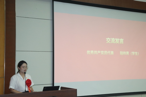 优秀共产党员代表丁文其、陆帅男同志,优秀党务工作者代表朱青同志以及先进基层党组织代表李征同志分别上台发言。