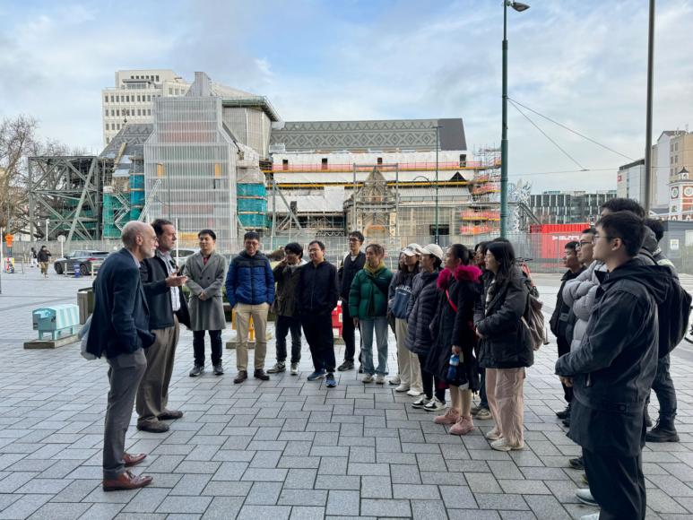 代表团参观了奥克兰大学结构实验室、风洞实验室、水利实验室、3D打印实验室及坎特伯雷大学结构实验室。坎特伯雷大学土木与自然资源工程系教授Gregory MacRae带队实地考察了新西兰基督城2011年大地震后城市重建的风貌,参观了大量抗震韧性建筑,学习先进抗震韧性技术的应用。