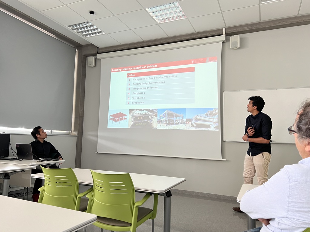 最后,Jose M. Adam团队就其近期在《Nature》上发表的封面文章做了题为“Arresting collapse propagation in buildings”的学术报告(图8),详细阐述了用于阻止建筑物连续倒塌的保险丝隔离方法,并与代表团就试验手段、该方法的实现途经等问题进行了深入探讨(图9)。