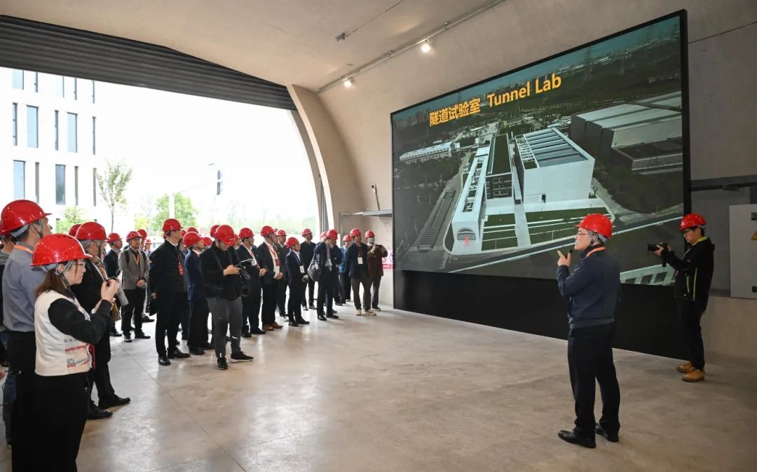 与会嘉宾首先来到隧道试验室,现场观摩隧道火灾智慧防灾试验。随着隧道内火灾发生,智慧防灾系统快速实现火源的定位及预警,并基于光纤系统现场采集的离散数据和多灾害智算与推演引擎的实时计算,实现对隧道火灾规模、温度场分布、火灾发展态势的动态重构与预测。据悉,试验室形成了包括大尺度结构多灾害数物融合全息试验系统、隧道火灾智慧防灾系统、人因感知试验系统等在内的1+1+N可扩展的数物融合防灾试验系统集群。其中,大尺度结构多灾害数物融合全息试验系统是目前唯一可同时实现非接触式全息测试、多灾害环境模拟、数物共融和实时交互的大型试验系统。
