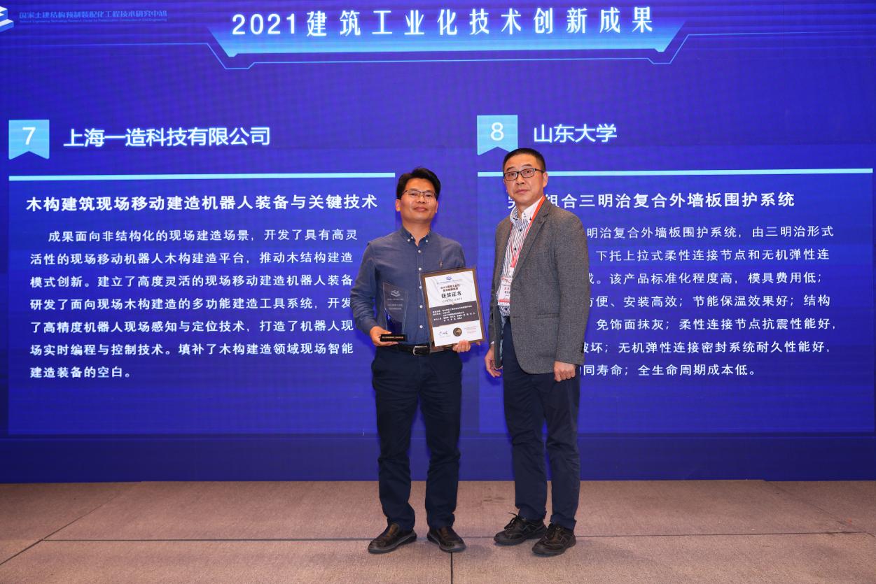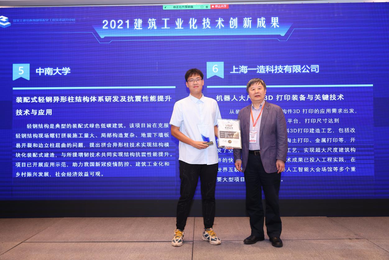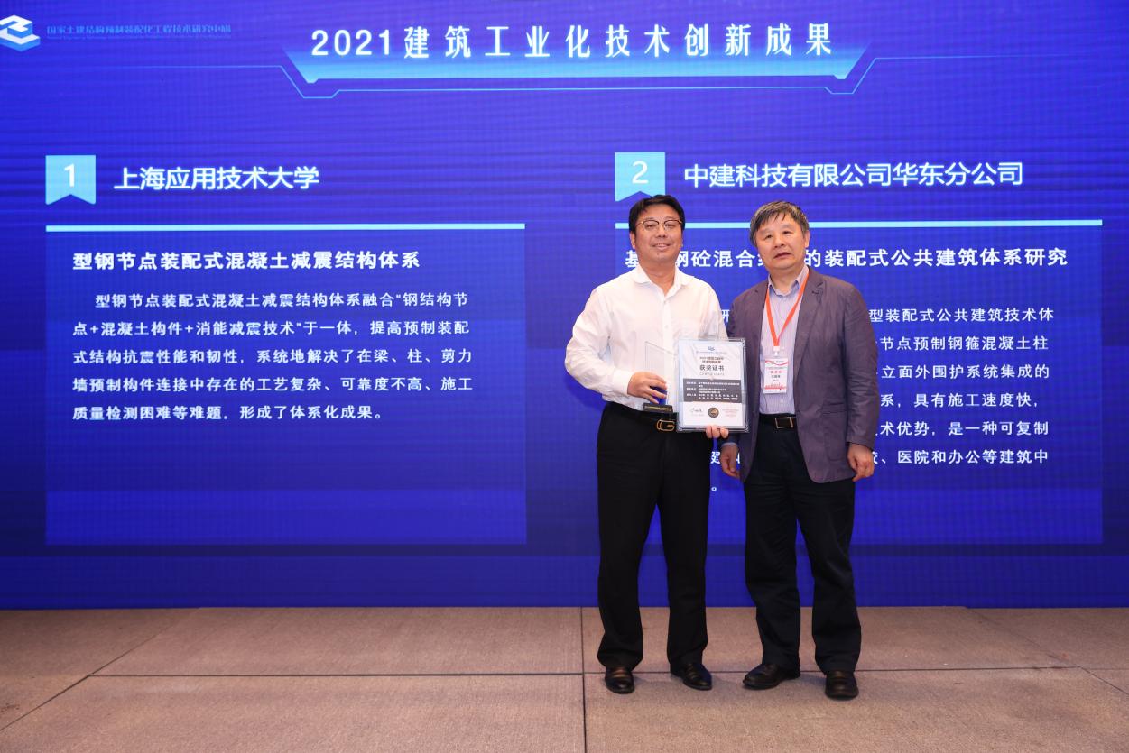 会议期间,国家中心主任助理李征研究员代表中心发布“2021建筑工业化技术示范项目和技术创新成果”,本次经过9位专家的严格评审,共有5个项目荣获“2021建筑工业化示范项目”,14项成果荣获“2021建筑工业化技术创新成果”。现场由中心主任李国强教授、中心副主任李元齐教授分别为到场的获奖企业颁奖。