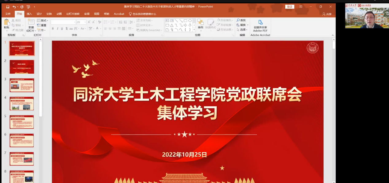 公司党委将党的二十大精神学习作为近期集体学习的首要内容。10月18日,公司党委会通过收集、汇总主流媒体的信息资料,集体学习党的二十大会议精神;10月25日,公司党政联席会集体学习党的二十大报告中关于教育科技人才等重要内容精神;各系党总支、直属支部和各党支部也在第一时间,组织集体学习二十大报告原文,高位推进对二十大精神的深入学习和融会贯通。