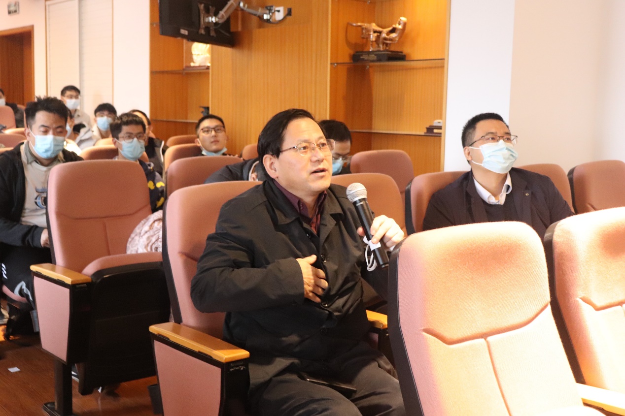 王明洋院士为大家作了题为防护工程研究新进展的学术报告。他首先介绍了现有冲击爆炸防护学科发展历程及其研究现状,简述了目前亟待解决的工程难题;接着,介绍了浅部防护问题中侵爆介质力学行为演化、侵爆成坑耦合地冲击、钻地弹侵彻模拟相似、 超高速弹成坑模拟相似、钻地炸弹工程防护、超高速弹工程防护等问题与技术的研究成果;最后,总结了深部防护问题中地冲击耦合高地应力、开挖卸荷耦合高地应力等问题的最新研究进展。报告内容精彩,受到师生们的热烈欢迎与广泛好评,现场讨论互动活跃。