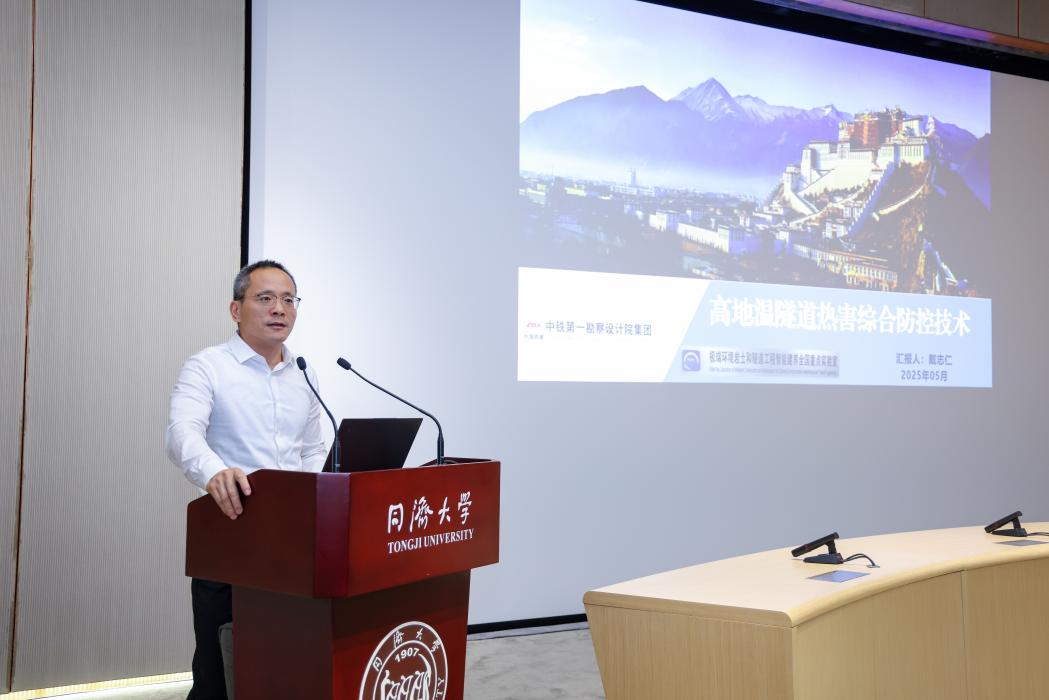 戴志仁作《隧道高地温综合防控技术》报告,阐述了高原冻土环境下的施工难点,创新使用高地温隧道热害防控关键技术、长距离多工作面施工通风技术、高地温隧道功能性材料的成功经验,未来将聚焦“超长、高热、多工作面隧洞群的热–污协同调控技术”开展系统性、集成化研究。