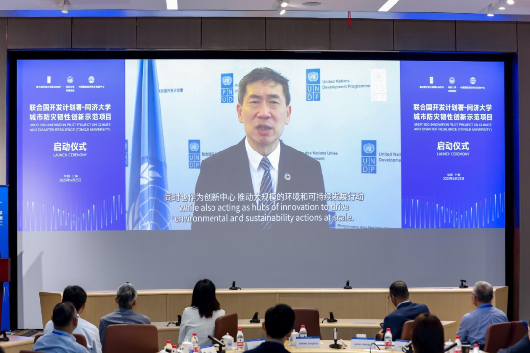 联合国副秘书长、联合国开发计划署代理署长徐浩良发表视频致辞,“在联合国开发计划署成立六十周年之际,RISE Lab的启动,标志着我们在共建气候韧性城市道路上激动人心的新篇章。作为一个全球共享的平台和创新发展解决方案的孵化器,实验室将探索全新的方法,并推动知识交流,助力中国以及全球城市应对日益加剧的气候灾害和快速城市化所带来的挑战。”