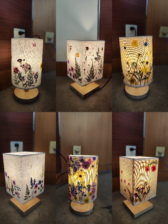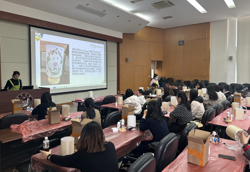 压花台灯是使用天然花卉压制成的干花在灯罩上进行艺术拼接制作而成的手工台灯。制作老师介绍了步骤和构图原则后,老师们随即投入到了设计和制作中。一花一叶、一树一草,老师们根据花材的颜色、形状、大小等进行设计,排列在台灯罩上,再经过黏贴和固定,便有了这一盏独一无二的可点亮世界、呵护温暖的台灯。