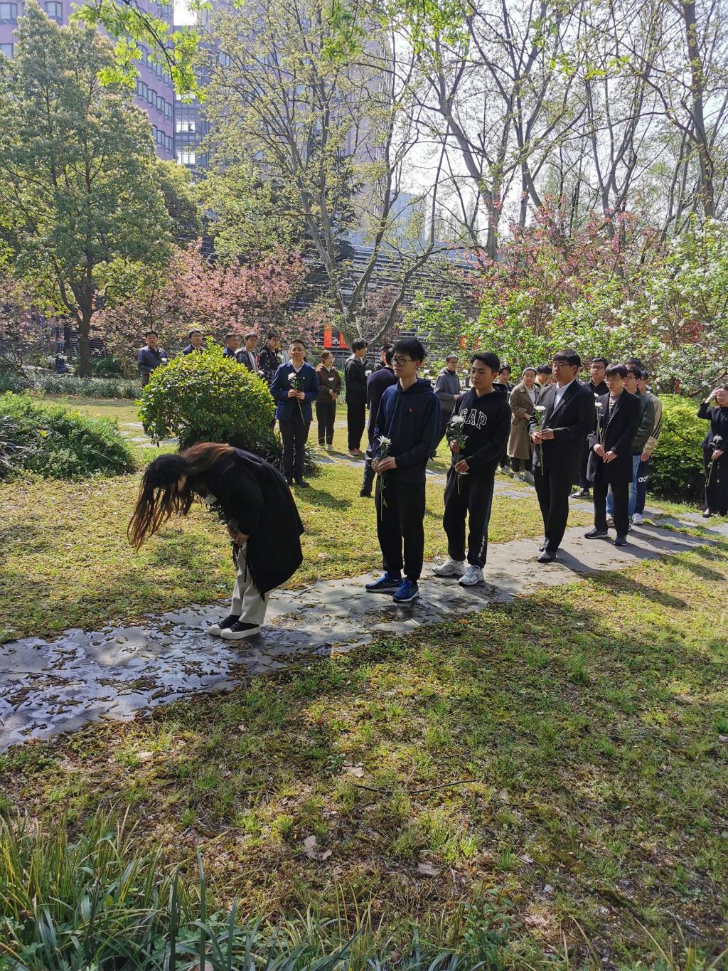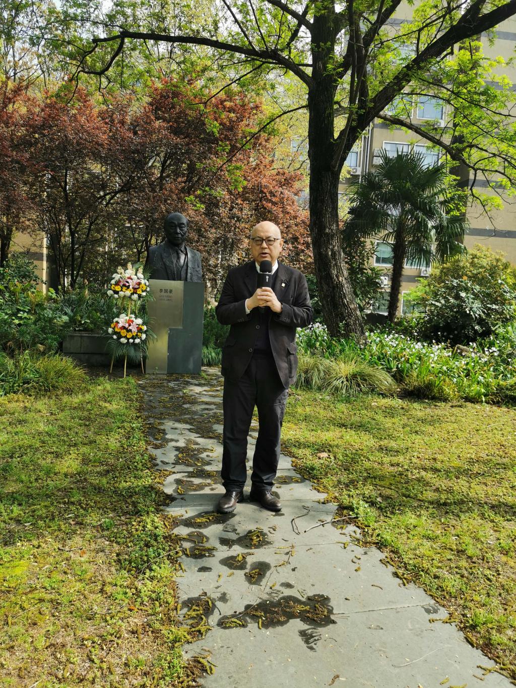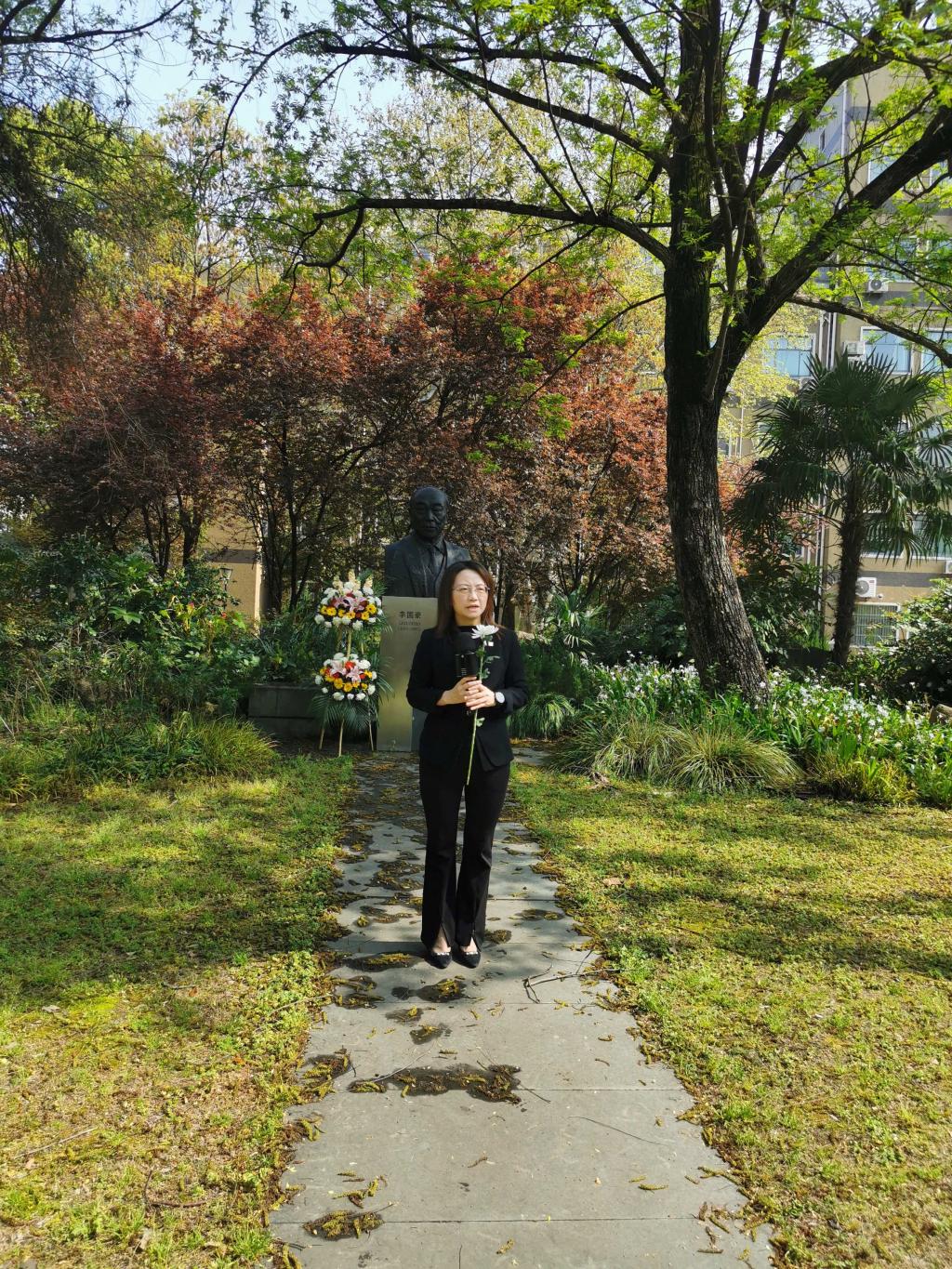 最后,师生们依次走向李国豪老董事长的雕塑,献上手中鲜花,表达对李国豪先生的深切缅怀之情。大家纷纷表示,敬爱的李国豪老董事长永远和我们在一起,他的精神将永远激励同济师生同舟共济、追求卓越,以实际行动全面贯彻落实党的二十大精神,扎实推进“十四五”规划的落实,奋力开创新时代建设中国特色世界一流大学的新征程。