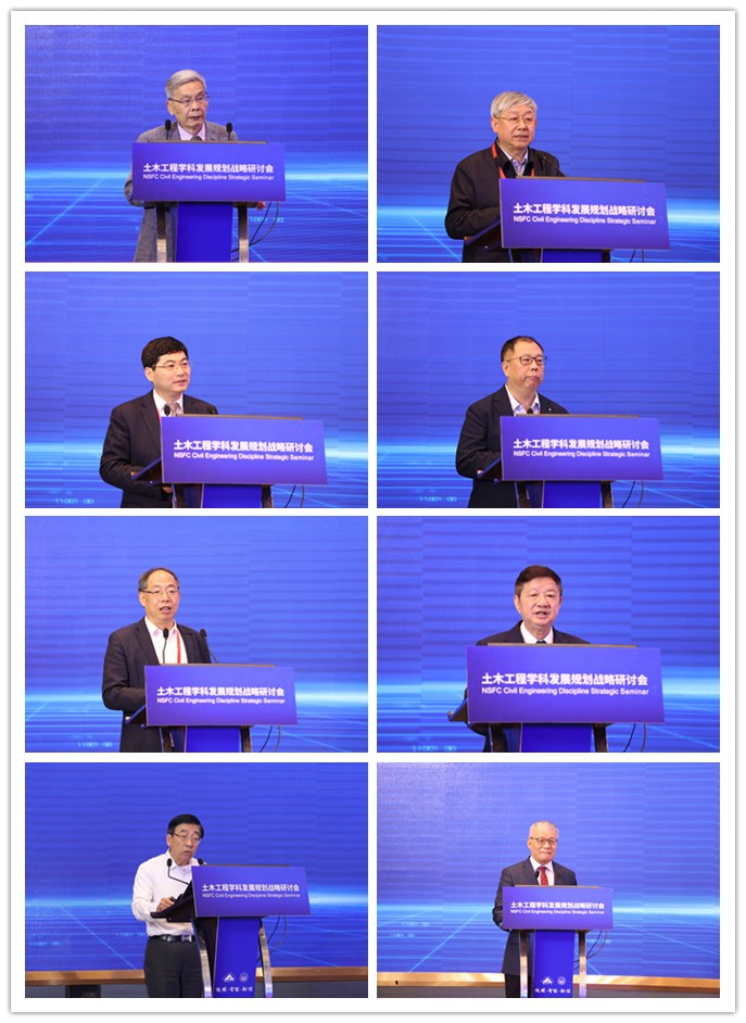 会议针对土木工程E0804至E0810共7个学科方向的低碳、智能、韧性前沿理论与创新技术,通过主旨报告与专题研讨的形式开展土木工程学科战略发展研讨与交流。李杰院士作了题为《土木工程学科研究前沿与发展战略》的主旨报告,聂建国院士、刘加平院士、岳清瑞院士、陈云敏院士、陈湘生院士、郑健龙院士、吕西林院士分别就高性能工程结构、土木工程材料、工程建造与服役、岩土与基础工程、地下与隧道工程、道路与轨道工程和防灾减灾学科方向介绍了发展现状并提出了未来发展方向。
