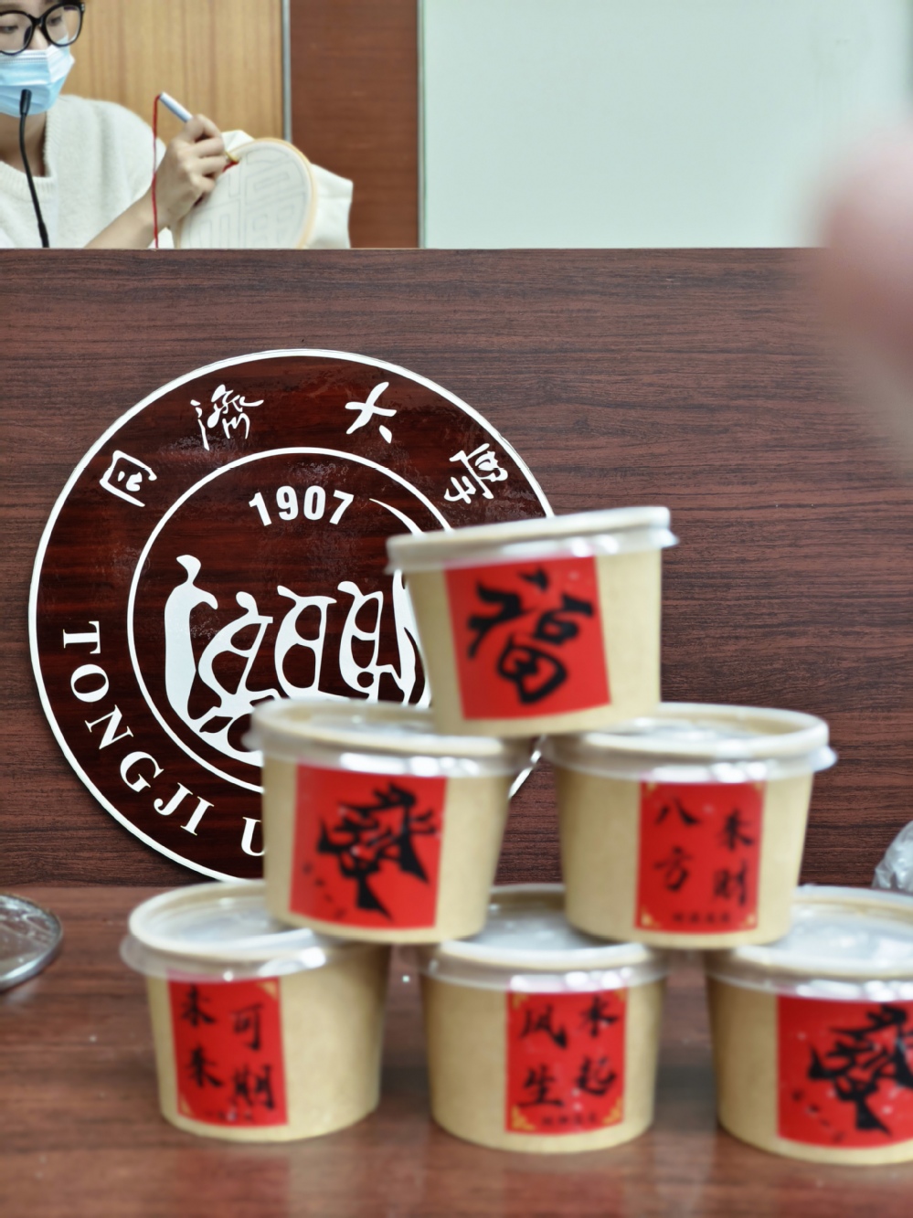 在福字“戳戳绣”环节,教职工手持戳针,轻穿毛线,专注地在布料上一针一线创作。大家专注投入、细致创作,每一个亲手戳制的“福”字,都纹理饱满、暖意十足,既承载着传统福文化的美好寓意,也彰显了教职工们专心手工、追求美好的生活情趣。