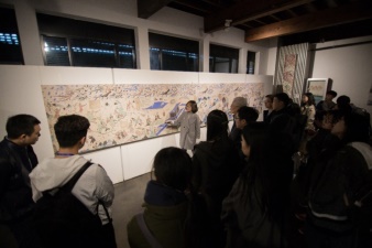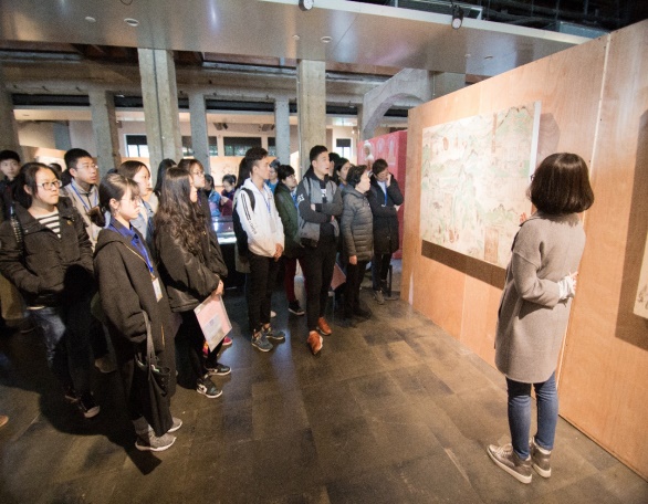 与会嘉宾在志愿者的带领下在bevictor伟德官网博物馆参观敦煌壁画展