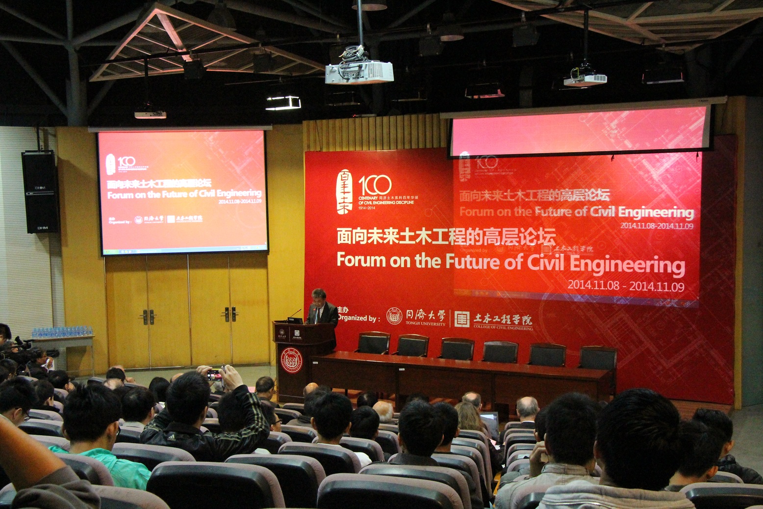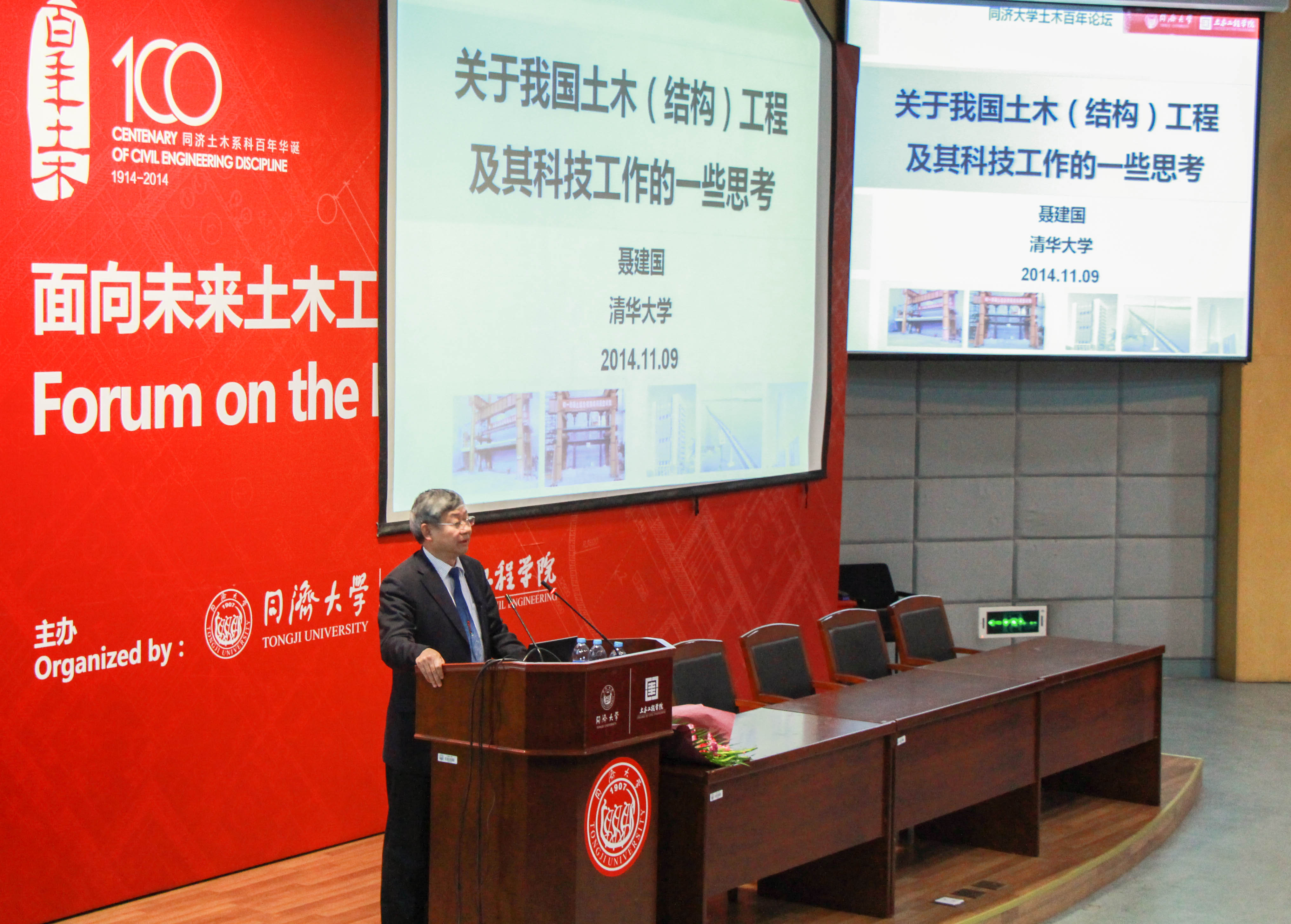 百年庆典11月8日到9日,“面向未来土木工程的高层论坛”在bevictor伟德官网A101成功举办。美国工程院院士Ross B. Corotis,日本东京大学FUJINO教授,英国皇家工程院院士Brian Simpson和中国工程院院士钱七虎,中国工程院院士杨永斌(台湾),中国工程院院士聂建国,分别参加了8日下午和9日上午的高层论坛,并带来重要学术报告,讨论土木工程未来的发展方向和发展战略,也为土木工程系科未来几十年的发展勾勒了前景。