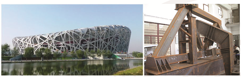 钢结构节点性能试验,右图为钢结构节点性能试验