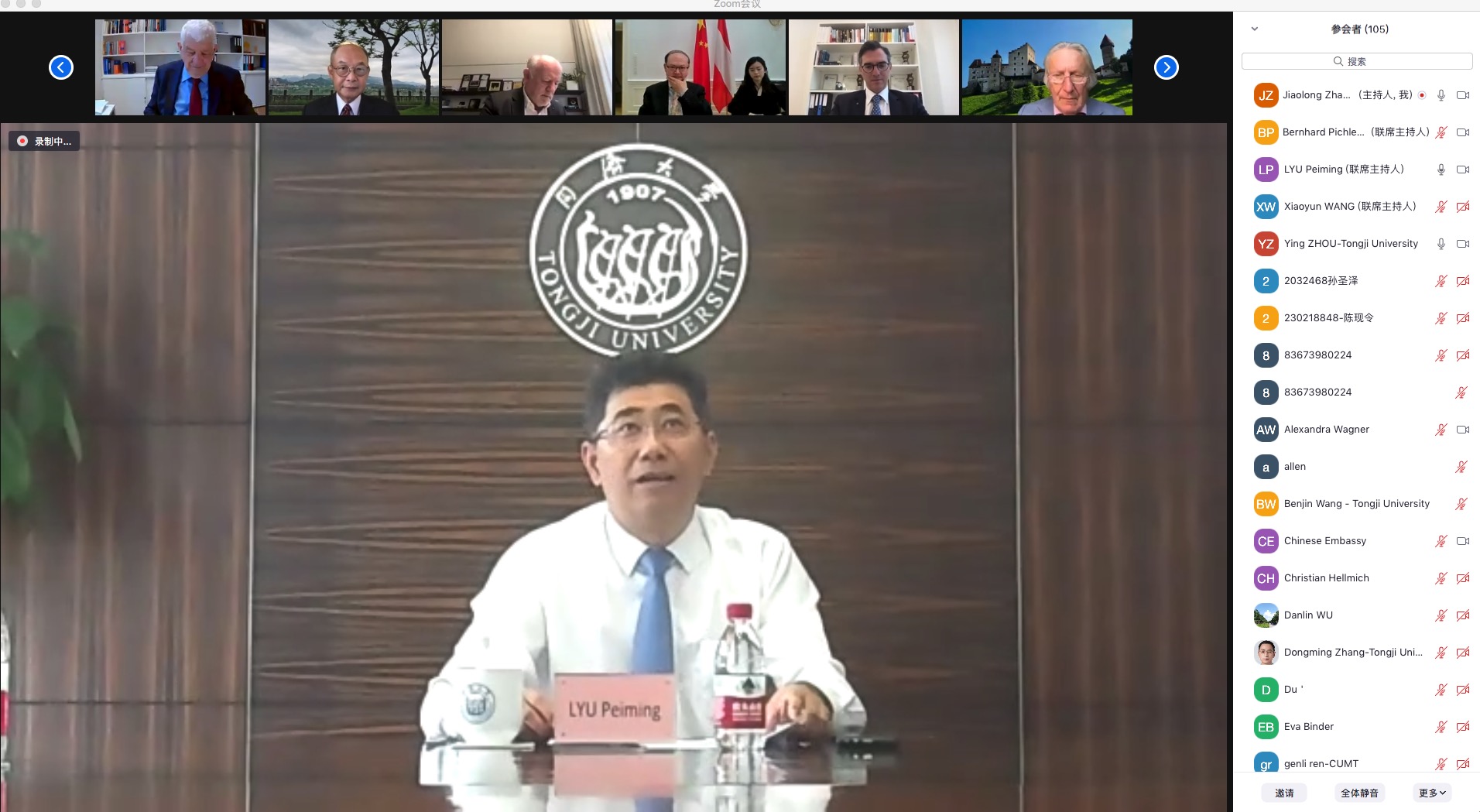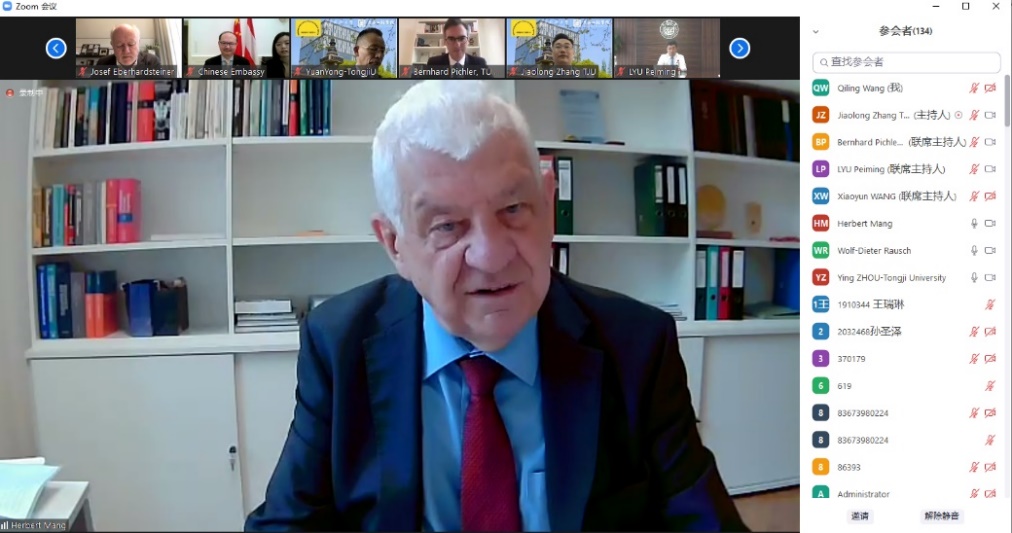 Prof. Ying Zhou, Dean of the College of Civil Engineering, attended the symposium and chaired the opening ceremony. The distinguished guests attending the opening ceremony included Prof. Peiming Lu, Executive Vice President of Tongji University, Prof. Josef Eberhardsteiner, Vice Rector of Vienna University of Technology, Mr. Fengyun Lei, Counsellor for Scientific and Technological Affairs from Chinese Embassy in Austria, Mr. Helmut Rakowitsch, Consul General of the Austrian Consulate General Shanghai, Alexandra Wagner, Head of the OeAD Cooperation Office Shanghai, Prof. Wolf-Dieter Rausch, President of Eurasia Pacific Uninet (EPU), and Prof. Herbert Mang from TU Wien and Tongji University. They reviewed the history of cooperation between Tongji University and TU Wien as well as between China and Austria, praised the achievements of the bilateral cooperation and exchanges, and expressed ardent expectations for broader and deeper cooperation in the future.