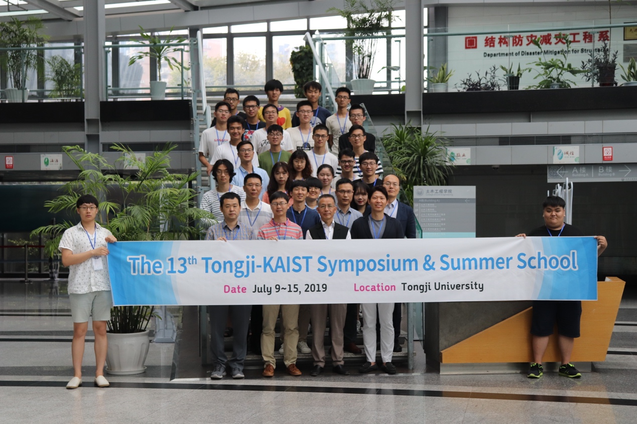 The 13th Tongji-KAIST Symposium and Summer School was held at College of Civil Engineering, Tongji University from 9 to 15 July, 2019. Under the theme of Sustainable and Novel Structures, 3 professors and 5 students from KAIST and 12 professors and 19 students from the CCE gathered and exchanged ideas and information on civil engineering.