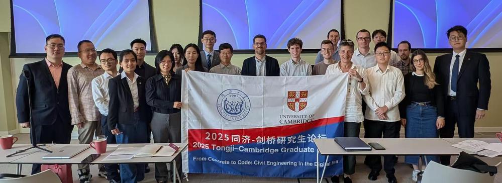 From June 17 to 20, 2025, the first bilateral graduate student forum between Tongji University and the University of Cambridge was held in Cambridge, marking the first tangible outcome of the Memorandum of Understanding (MoU) signed in 2024 between CCE at Tongji University and the Department of Engineering at the University of Cambridge. Centered on the theme “From Concrete to Code: Civil Engineering in the Digital Era,” the forum facilitated dynamic academic exchanges between 13 graduate students from CCE and over 20 faculty members and students from the University of Cambridge. The discourse was advanced by dual keynote presentations: Cambridge’s Prof. Viggiani analyzed the behavior of soil during freezing and thawing, while CCE’s Vice Dean Prof. Fang Liu proposed innovative frameworks for human-centered underground space. This successful inaugural forum, made possible by the MoU, establishes a significant platform for academic collaboration between the institutions.