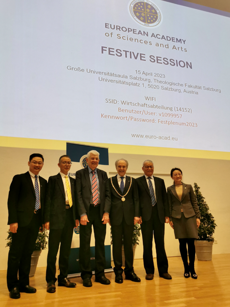 On April 15, 2023, the European Academy of Sciences and Arts (EASA) held a grand inauguration ceremony for the new members who are formally admitted to the Academy in Salzburg, Austria. Prof. Xilin Lu and Prof. Yong Yuan were invited as the new EASA members in 2022, accompanied by Dean Ying Zhou, Prof. Peizhen Li and Dr. JiaoLong Zhang.