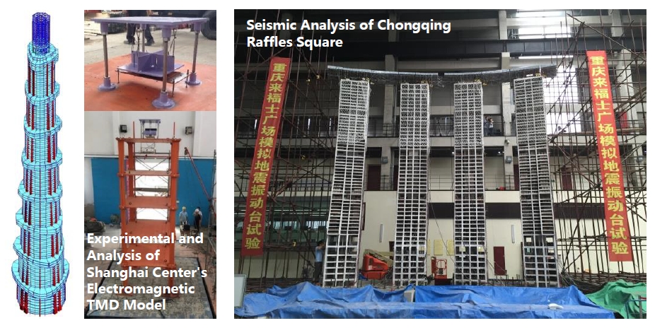 A comprehensive method for seismic performance evaluation and enhancement of complex high-rise structures has been developed. The research outcomes have provided technical support for significant projects such as the Shanghai Center (China's tallest) and Chongqing Raffles Square (the world's largest four interconnected towers at elevated heights), in a position of international leadership.