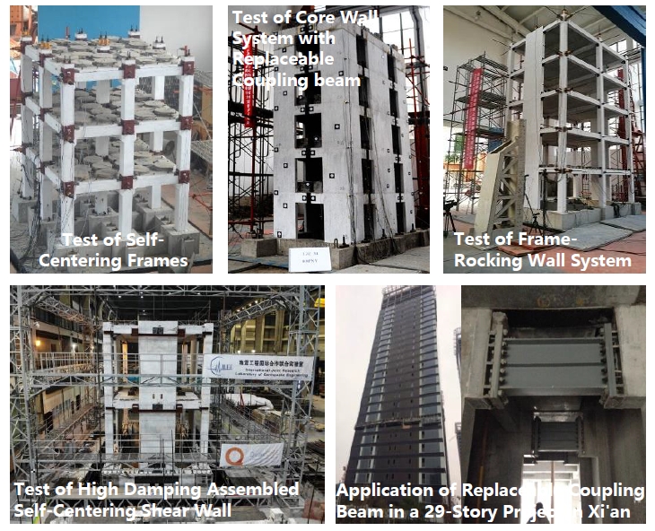 The concept of seismic resilient structural systems has been introduced, with a systematic investigation of novel systems including self-centering frames, self-centering shear walls, and shear walls with replaceable coupling beams. The research findings have been successfully demonstrated in engineering applications within high-intensity seismic zones.