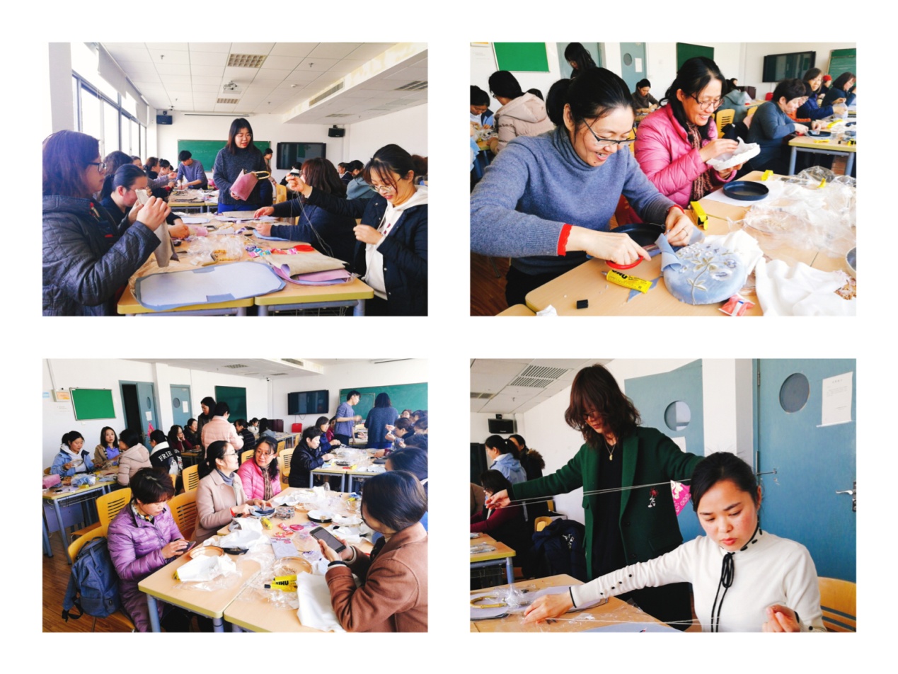 活动现场,组织者向参与人员派发了手工包材料套包,详细讲解制作方法与注意事项。大家带着美好的心情,在顶针缝制的过程中,飞针走线,相互交流,气氛活跃。口金包DIY把传统工艺与现代工艺相结合,制作出符合当代流行的刺绣方式,原材料选用棉布材料透气舒适,淡雅朴实,成品效果立体、艳丽、逼真,深受到场女教师喜爱。