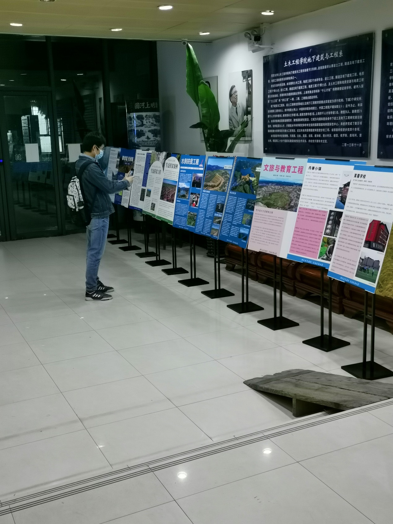 2020年11月,党支部精选了若干脱贫攻坚中的重大工程项目,排版制作成精美展板后,在地下建筑与工程系所在岩土楼一楼开展了为期两周的扶贫重大工程展览,展览面向全系师生开放。之后,党支部将其中若干图片投稿展出至南大道,展示脱贫攻坚中土木工程的突出贡献。