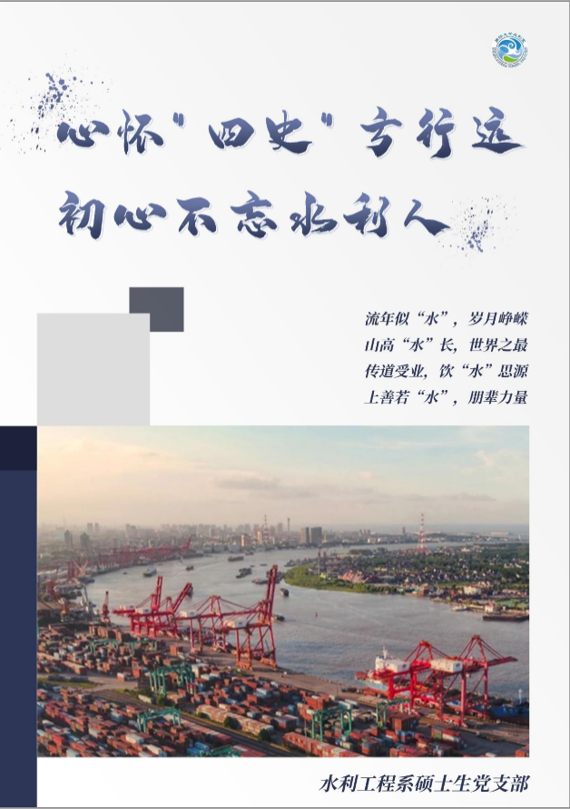 为更好地重温我国水利建设的跨越式发展,水利工程系硕士生党支部以“心怀‘四史’方行远,初心不忘水利人”为主题制作微视频和纪念册,共分为四个篇章:“流年似‘水’,岁月峥嵘”、“山高‘水’长,世界之最”、“传道受业,饮‘水’思源”、“上善若‘水’,朋辈力量”。全体支部成员积极响应、全身心投入,项目顺利完成。以此项目为契机,引领水利学子回顾水利工程发展历程、学习历史长河中涌现出的一大批优秀水利学者的事迹,体悟科学精神,充分激发支部成员的民族自豪感和专业认同感,引导党员群众从中感悟爱国情怀,树立起报效祖国的远大理想,走好新时代长征路。
