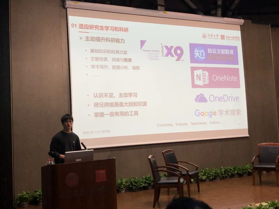 主题分享环节开始,郑虎老师先作《科研能力的培养与认识》分享。郑虎老师提出一个共识:大家通过高考考研等来到了同济,都具备了一定的科研能力,但是能考高分不代表科研能力强。