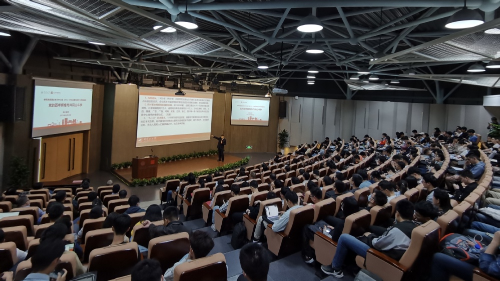 李忠教授在报告中回顾了中国共产党从初创到强盛的百年辉煌历程。随后,他以一系列重大历史事件为主线,包括“文家市退兵”、“三湾改编”、“古城定策”、“大仓会见”、“茅坪安家”、“水口建党”等,向大家详细讲解了井冈山革命根据地的创立过程和伟大成就。李忠教授的报告声情并茂,多次在讲解过程中深情演唱革命歌曲,赢得了在场听众的阵阵喝彩。最后,李忠教授谈起井冈山精神在新时代的意义,细数了历代领导人对井冈山精神的高度评价,勉励后辈不忘初心、牢记使命,传承井冈山精神。