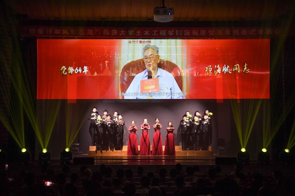 “衷心祝愿我们亲爱的党更加繁荣昌盛!”“要热爱党,热爱祖国,为祖国的繁荣和富强,为实现强国梦奋斗不息!”“始终坚持党员的初心使命,聚焦国家发展战略,把爱党爱国之情融入人才培养和科教兴国的实践中!”……在最后一个篇章“不忘初心”中,现场通过视频播放了以孙钧院士、项海帆院士、吕西林院士为杰出代表的公司老中青师生党员在建党百年之际的感怀和寄语,表达了他们对党的赤诚之心和奋进不息的坚定决心。