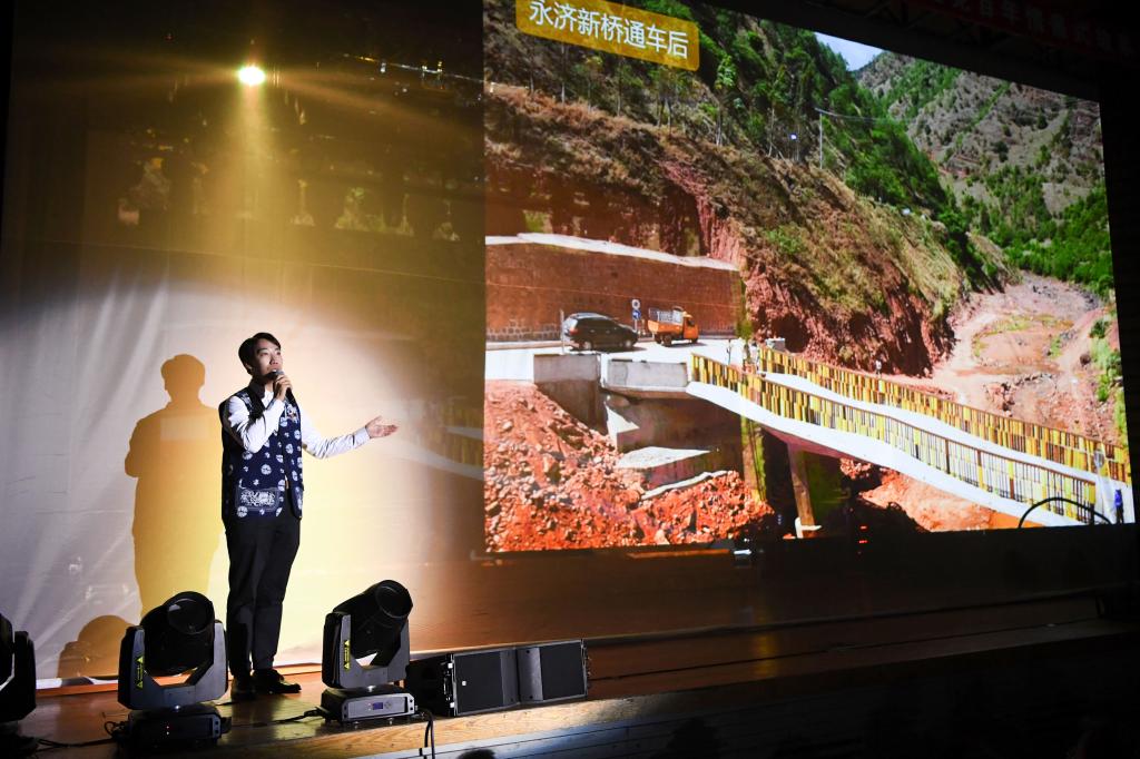 特别值得一提的是,故事会还有机融入了“同济元素”。在第六篇章“大国工程”中,情景式讲述了同济人力主由中国人自主设计建造南浦大桥的故事,以及一座座中国大跨度桥梁中的“同济智慧”。在第八篇章“脱贫攻坚”中,公司辅导员、驻云南省云龙县永安村第一书记近2年的孙羽捷来到现场,讲述了bevictor伟德官网为永安村重点打造的永济新桥、公共厕所、村民议事中心、道路硬化、村道亮化等一批特色扶贫项目,以及由此给永安村带来的翻天覆地的变化。