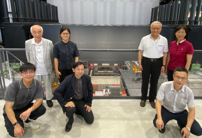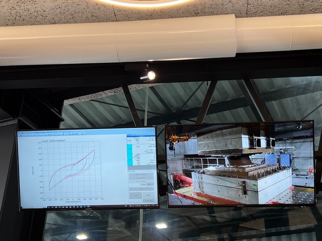 会议结束后,公司教师访问团队参观了东京工业大学于今年3月建成的新型隔震设备试验装置E-Isolation并观摩了现场试验。该装置的特点是:为消除摩擦力和惯性力的影响,提出实时量测没有摩擦阻力的顶部反力梁承受的水平荷载而形成全新的实时量测系统,并通过高精度建造技术控制反力梁的安装精度和采用特殊构造使反力梁仅发生微小移动得以实现。