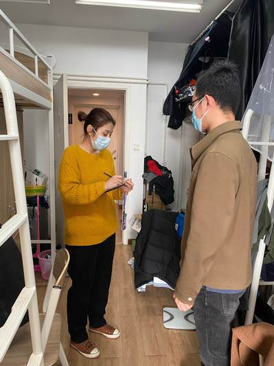 3月9日公司启动准封闭管理当天,公司两名专职辅导员因家庭所在小区封闭不在公司,在小区解封后,张铭旭和张骏尧第一时间打报告,申请返校参与抗疫工作。3月10日,两位辅导员老师全部到岗,与校内老师共同参与公司抗疫工作。