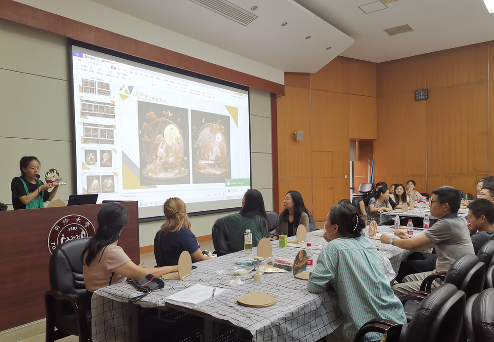 制作老师讲述了彩泥揉搓方法、基础色彩搭配、摆件整体布局等制作步骤和要点之后,教职工们就投入到了设计和创作当中,先用彩泥制作月兔、月饼等主题摆件,辅之以干花、珊瑚、海草等装饰点缀,发挥各自的想象力和创造力进行艺术创造,制作出独一无二的中秋主题月兔摆件。制作过程中,教职工们边讨论边制作,在放松身心中增进了同事之间的交流互动。